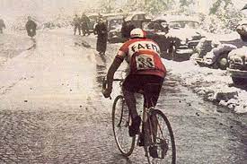 Leí alguna vez que varios ciclistas descendiendo el Gavia tenían que girar y empezar a subir de nuevo para entrar en calor y evitar que se les congelaran las manos para poder frenar. Increíble. Una etapa así es una utopía hoy en día, de las más recientes pero ni de lejos parecidas a ninguna de las mencionadas en el artículo fue la etapa sobre adoquines del Tour 2014, exhibición de Astana y Nibali entre la lluvia y el barro con un Contador que a duras penas era capaz de sostenerse arriba de la bici y cediendo casi 3 minutos con el tiburón. Lástima la posterior caída y abandono del pistolero (y la de Froome ese día), nos privamos de un Tour apasionante en mi opinión, el mejor Nibali de siempre en GV contra el mejor Contador desde 2010 y Froome en su apogeo.