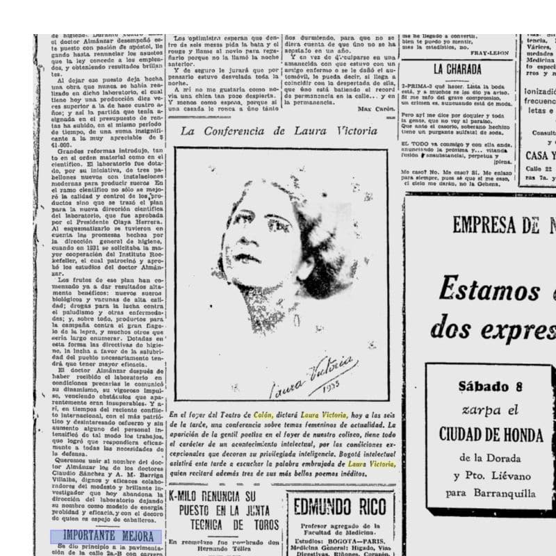 En 1937 hablaba en el Teatro Colón sobre “temas femeninos de actualidad” y su presencia era anunciada, el 17 de enero, en el diario El Tiempo, como un verdadero acontecimiento intelectual”. Por esos mismos años, otros artículos la ponían “en primera línea entre las poetisas suramericanas” y hablaban de su obra como una voz ya visible dentro y fuera de Colombia. No era una autora en la sombra.